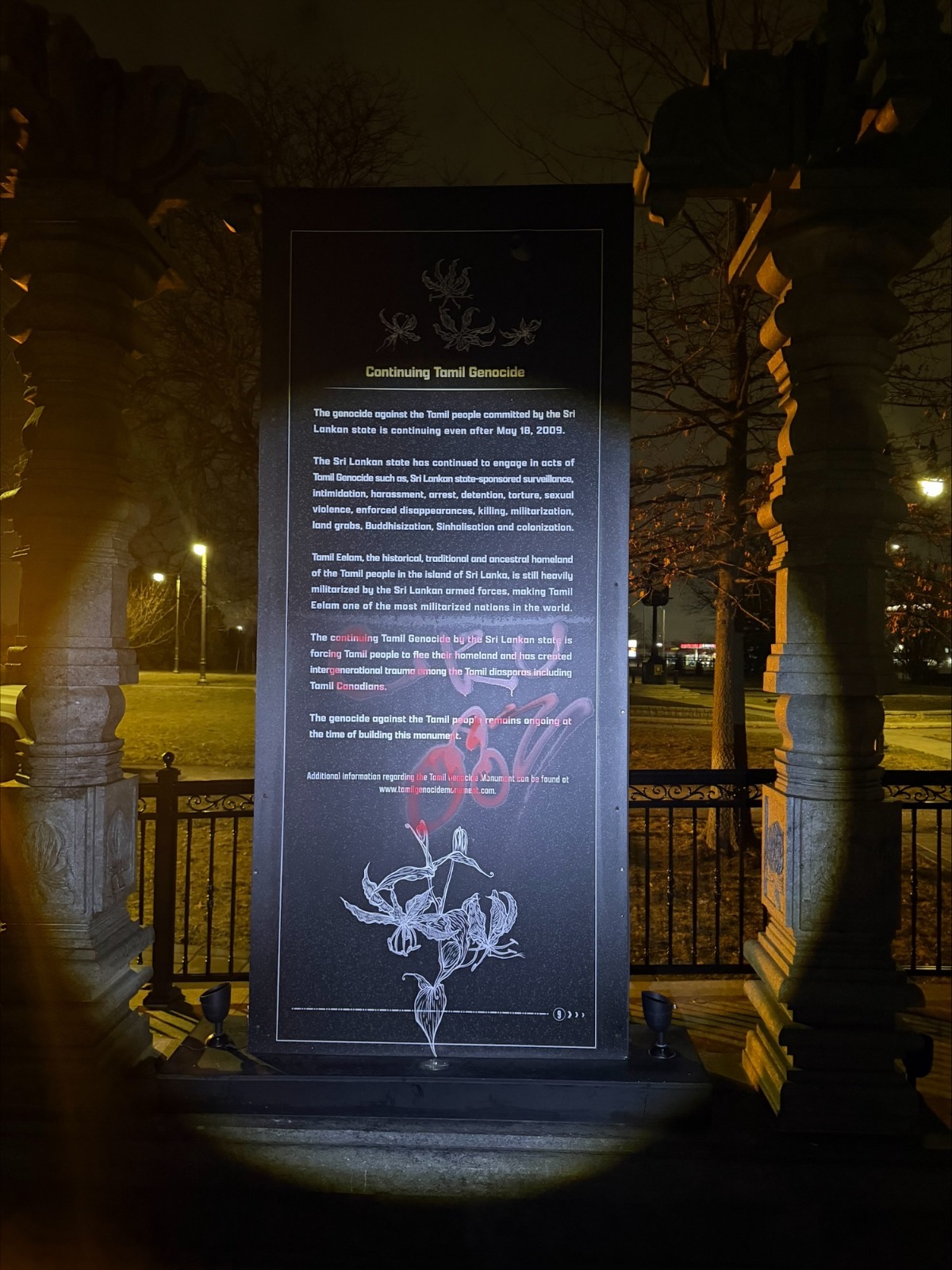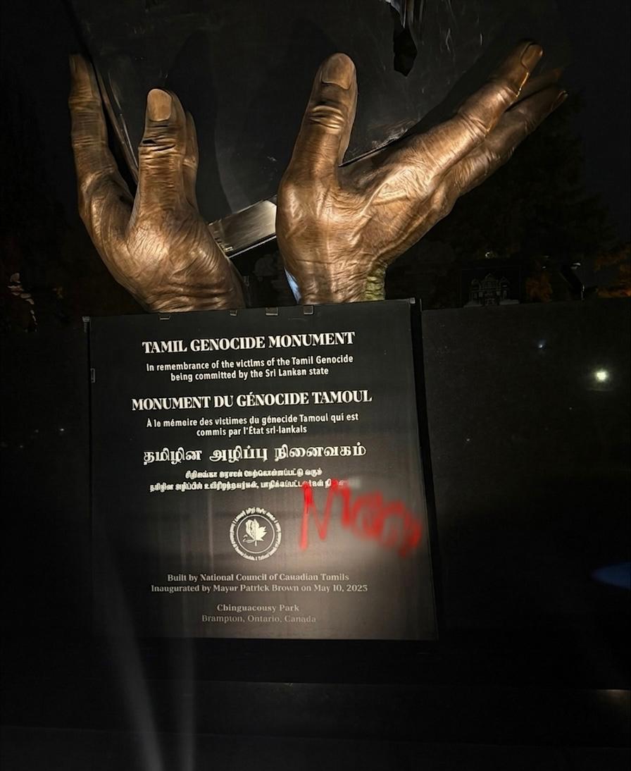 பிராம்ப்டனில் உள்ள தமிழ் இனப்படுகொலை நினைவிடம் சேதப்படுத்தப்பட்டதைக் கண்டு நான் மிகவும் மனம் வருந்துகின்றேன் என்று ஒன்டாரியோ மாகாண நாடாளுமன்ற உறுப்பினர் விஜய் தணிகாசலம் தெரிவித்துள்ளார்.