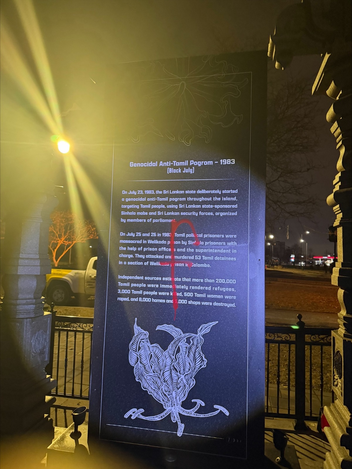 தென் ஆசியாவிற்கு வெளியே மிகப்பெரிய தமிழ் சமூகங்களில் ஒன்றாகக் கருதப்படும் கனடா தமிழர்கள் வாழும் சமூகத்தின் அடையாளம் மற்றும் வரலாற்றுக்கு எதிரான நேரடி தாக்குதலாக இந்தச் சம்பவம் அமைந்துள்ளது என்றும் அவர் குறிப்பிட்டுள்ளார்.